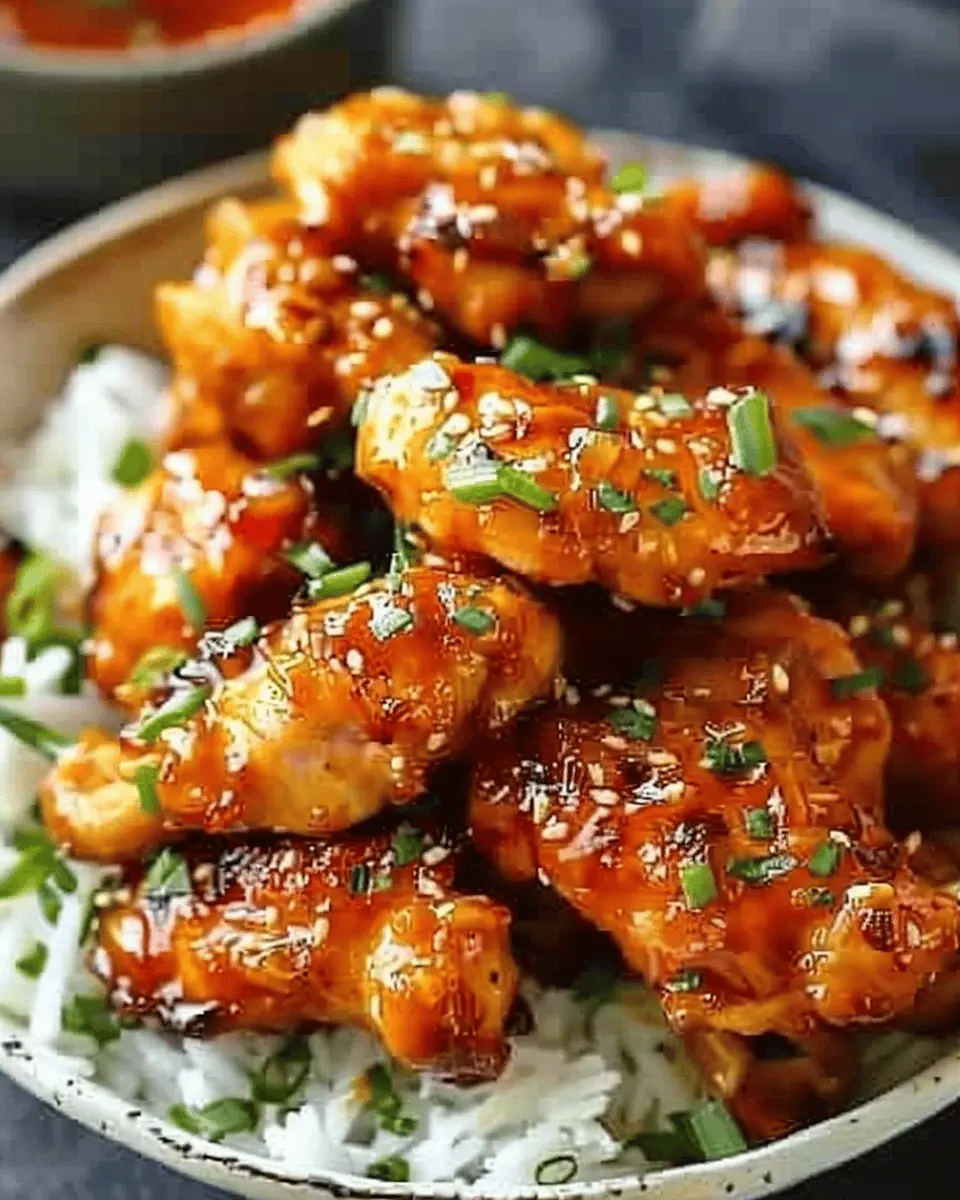 - Layered Style: Start with a base of fluffy rice, then place the chicken on top, drizzling the sauce for a glossy finish.