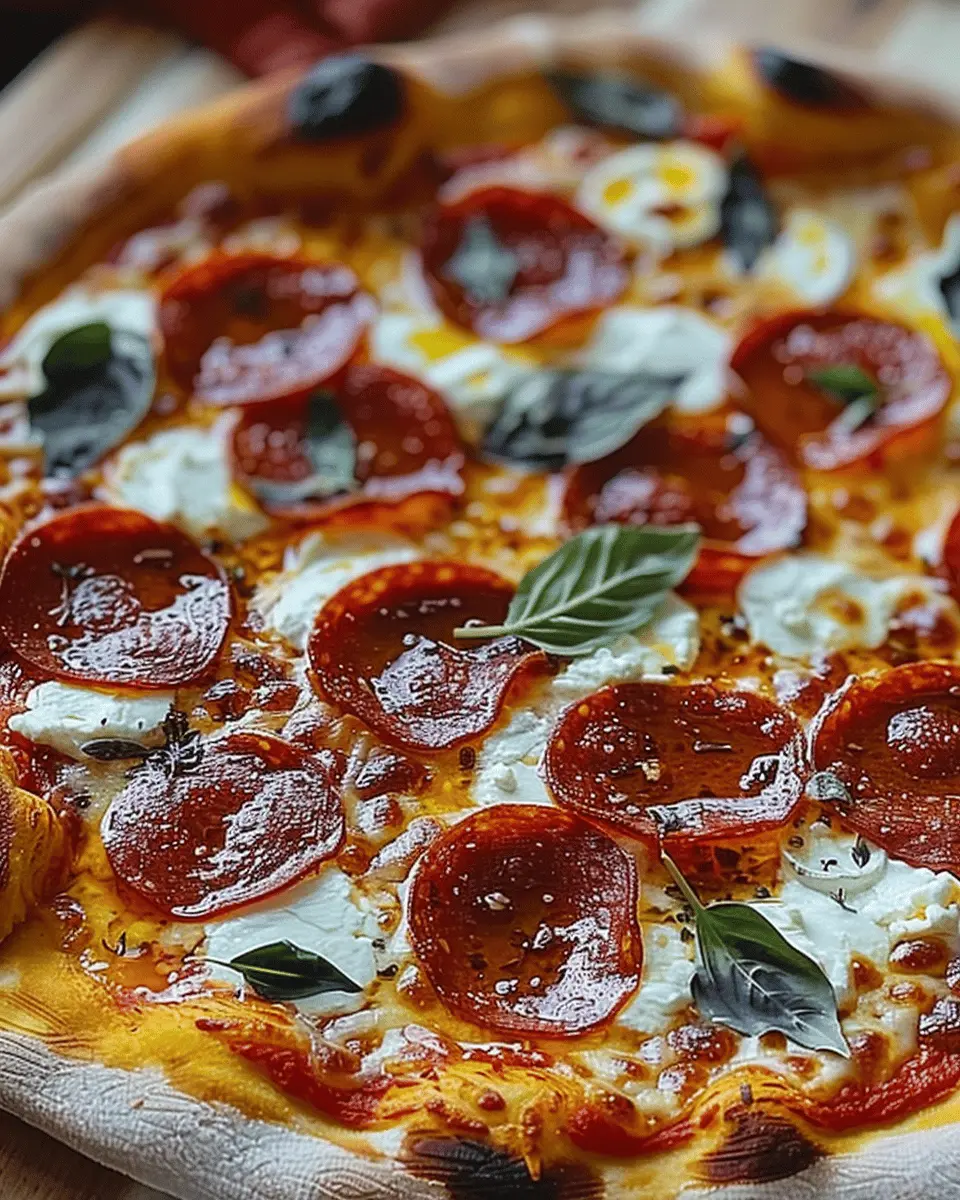Enjoy the perfect combination of spicy and sweet with this Hot Honey Pepperoni Ricotta Pizza. It’s a delightful twist on a classic favorite.