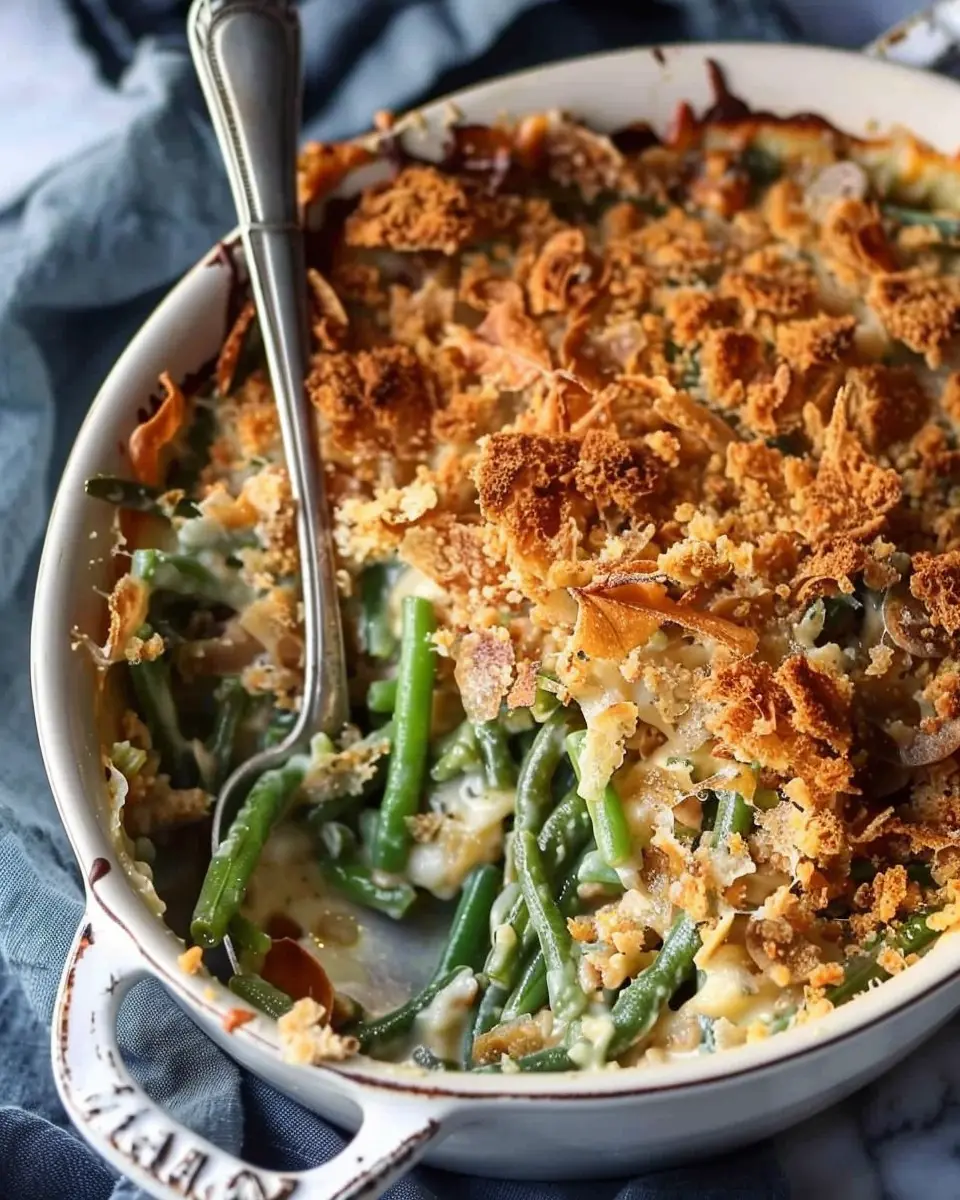 Storing leftovers is a breeze! If you have any remaining green bean casserole, let it cool to room temperature before transferring it to an airtight container. Refrigerate for up to 3-4 days. To reheat, pop it in the oven at 350°F until warmed through, or microwave individual portions. Keep in mind that the crispy topping might lose its crunch, but you can always sprinkle a little extra on top before reheating for added texture.