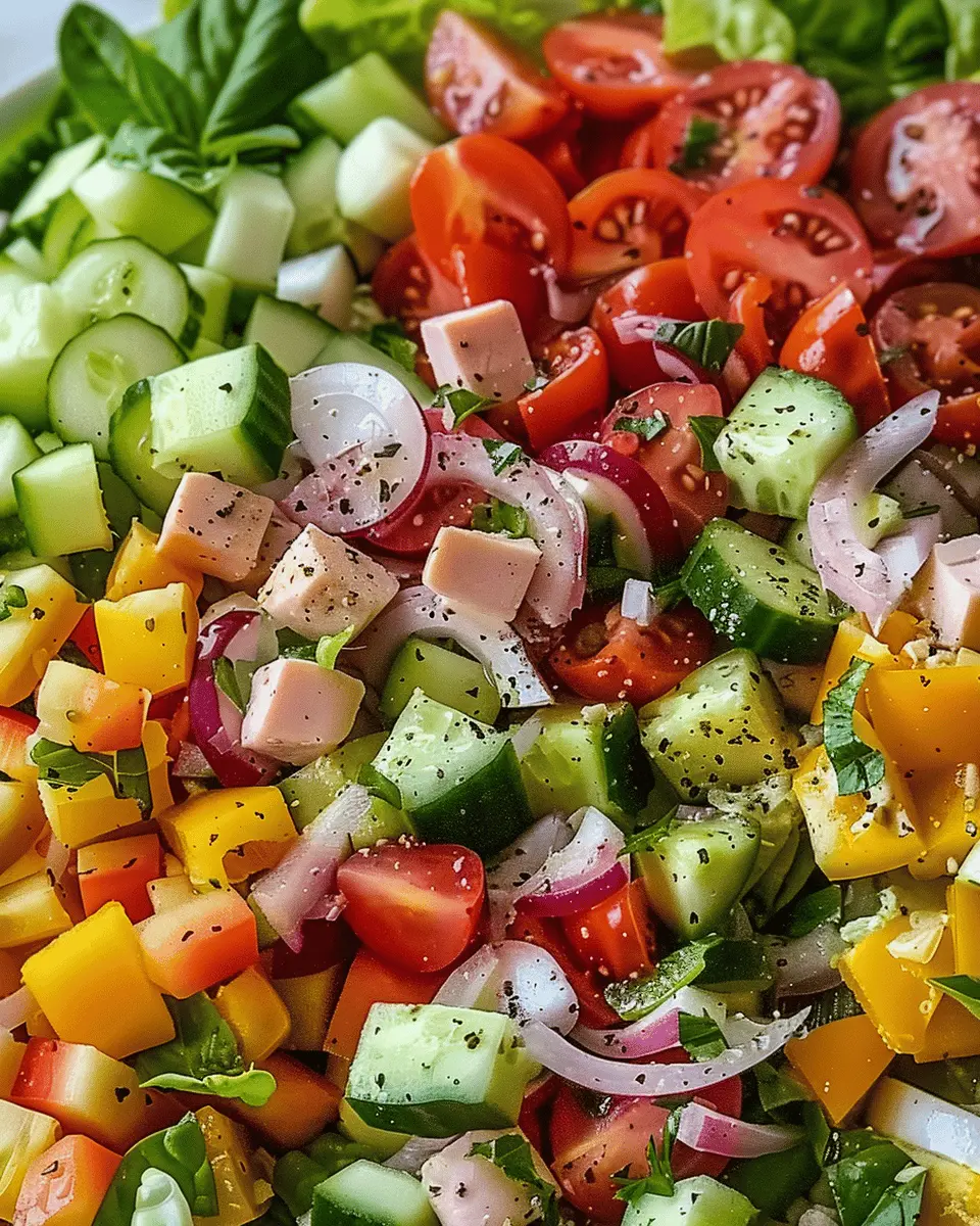 This Italian Chopped Salad is a delightful mix of fresh vegetables, turkey bacon, and chicken ham, making it a perfect and easy meal.