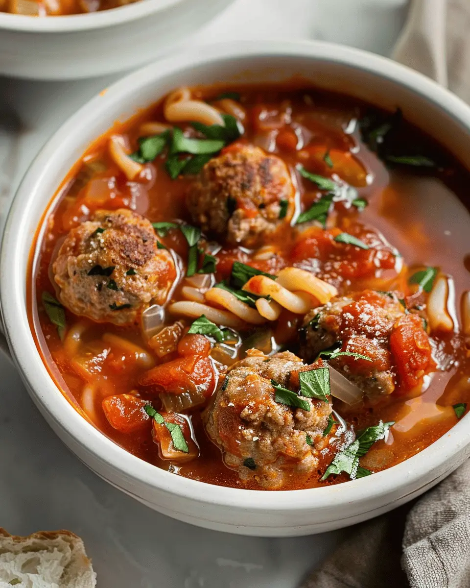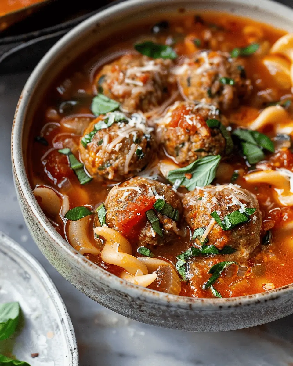 In summary, Italian Meatball Soup is more than just a dish—it’s a warm hug in a bowl, perfect for chilly evenings or whenever you crave something comforting. This flavorful blend of tender meatballs, fresh vegetables, and aromatic herbs makes it irresistible. Not only is it delicious, but it also packs nutrients to keep you energized.