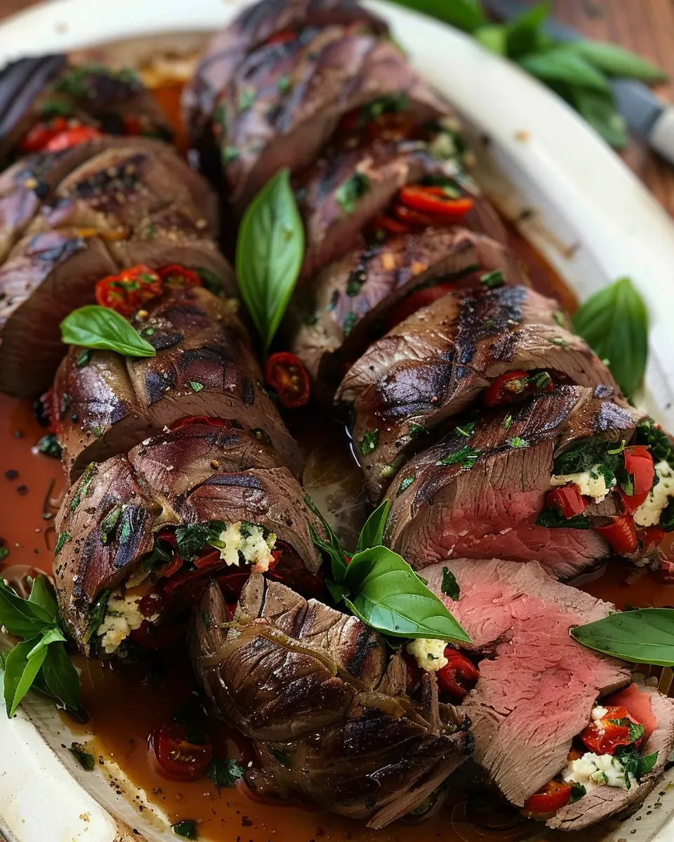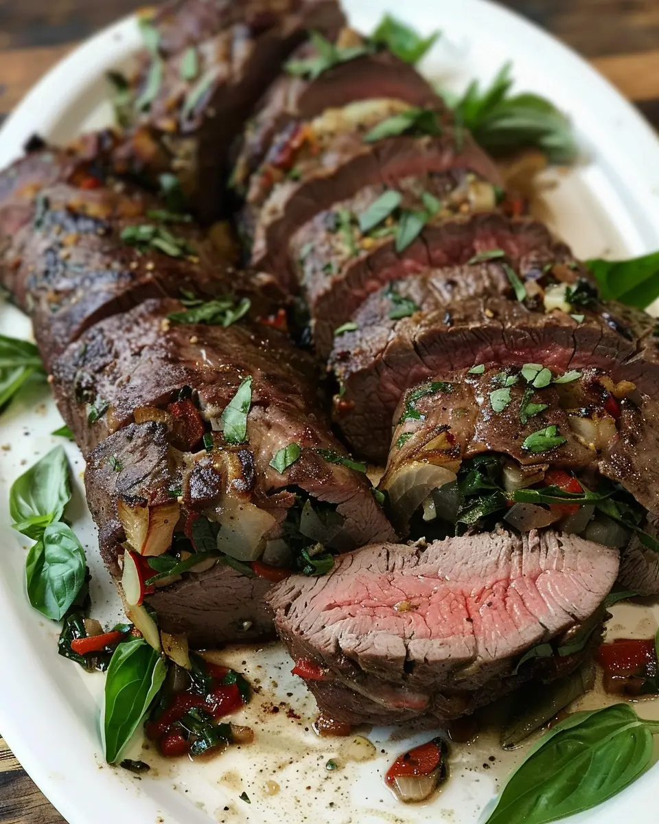 Imagine biting into a succulent flank steak, bursting with Mediterranean flavors. For an enticing twist, fill your flank steak with a mixture of crumbled feta cheese, chopped Kalamata olives, and sun-dried tomatoes. This combination adds a briny richness that complements the beef beautifully. To prepare, simply sauté some garlic in olive oil before mixing in your filling ingredients. Roll it all together and roast to perfection. Pair this with a crisp Greek salad, and you’ve got a meal that transports you straight to the Mediterranean coast.
