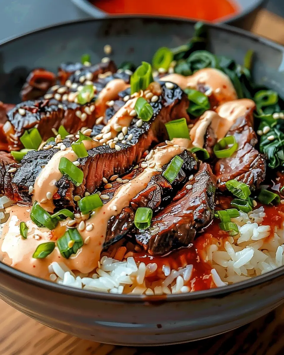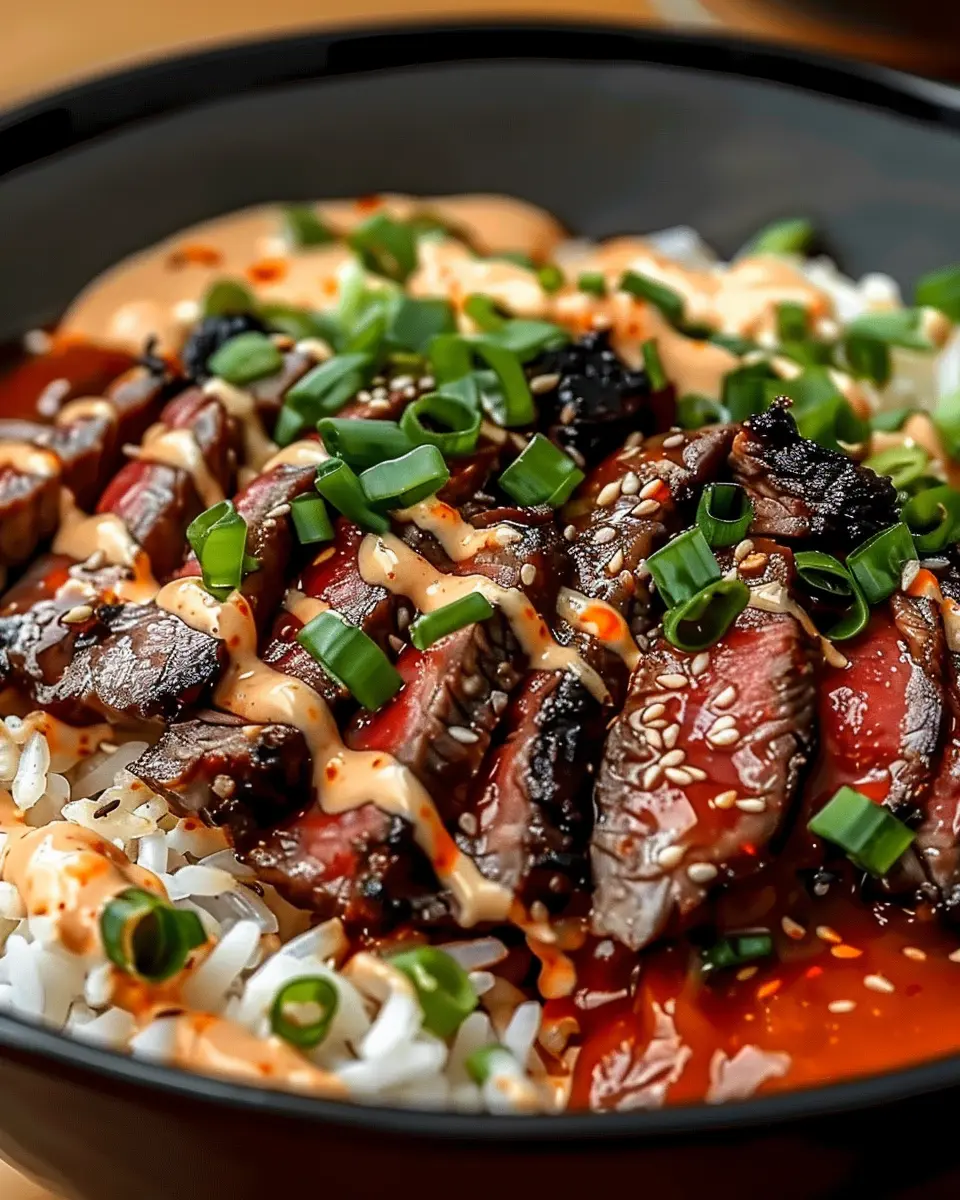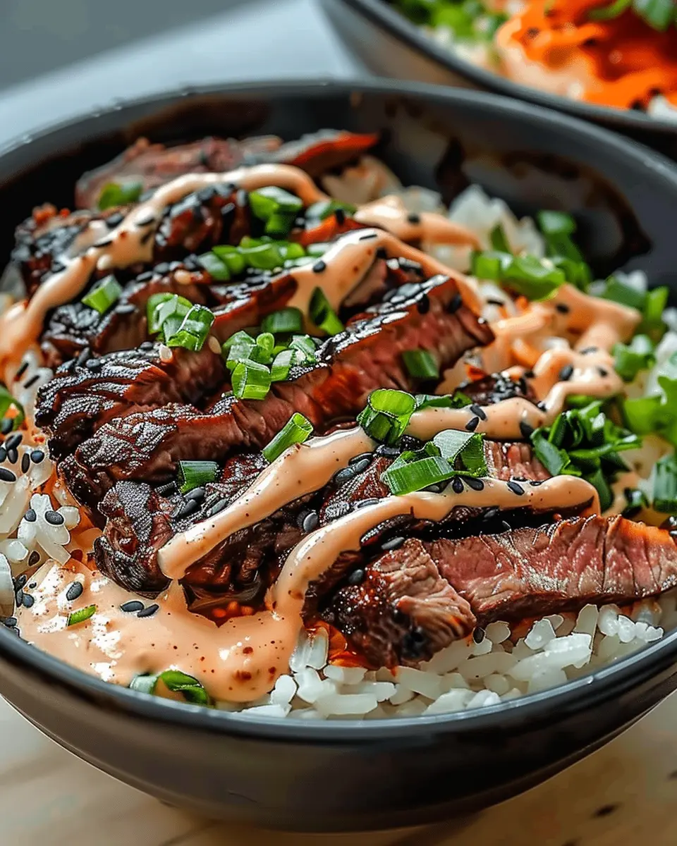 PrintKorean BBQ Steak Rice Bowls: Easy Bowls with Spicy Cream Sauce