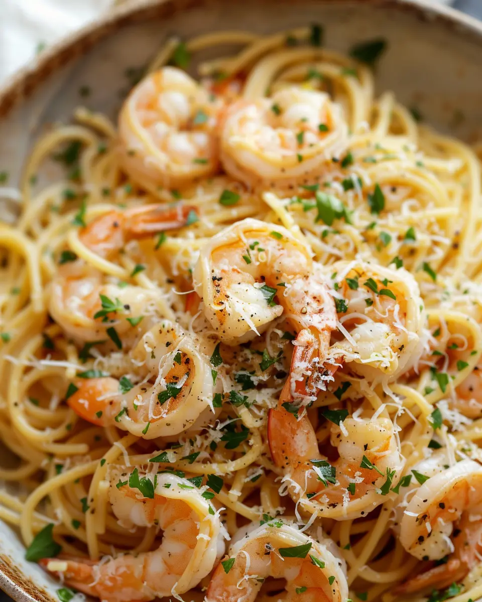 Quick and Easy: Perfect for busy weeknights, this dish can be prepared in under 30 minutes. With just a few simple ingredients, including succulent shrimp, garlic, and creamy parmesan, you’ll have a restaurant-quality dish without the hassle.
