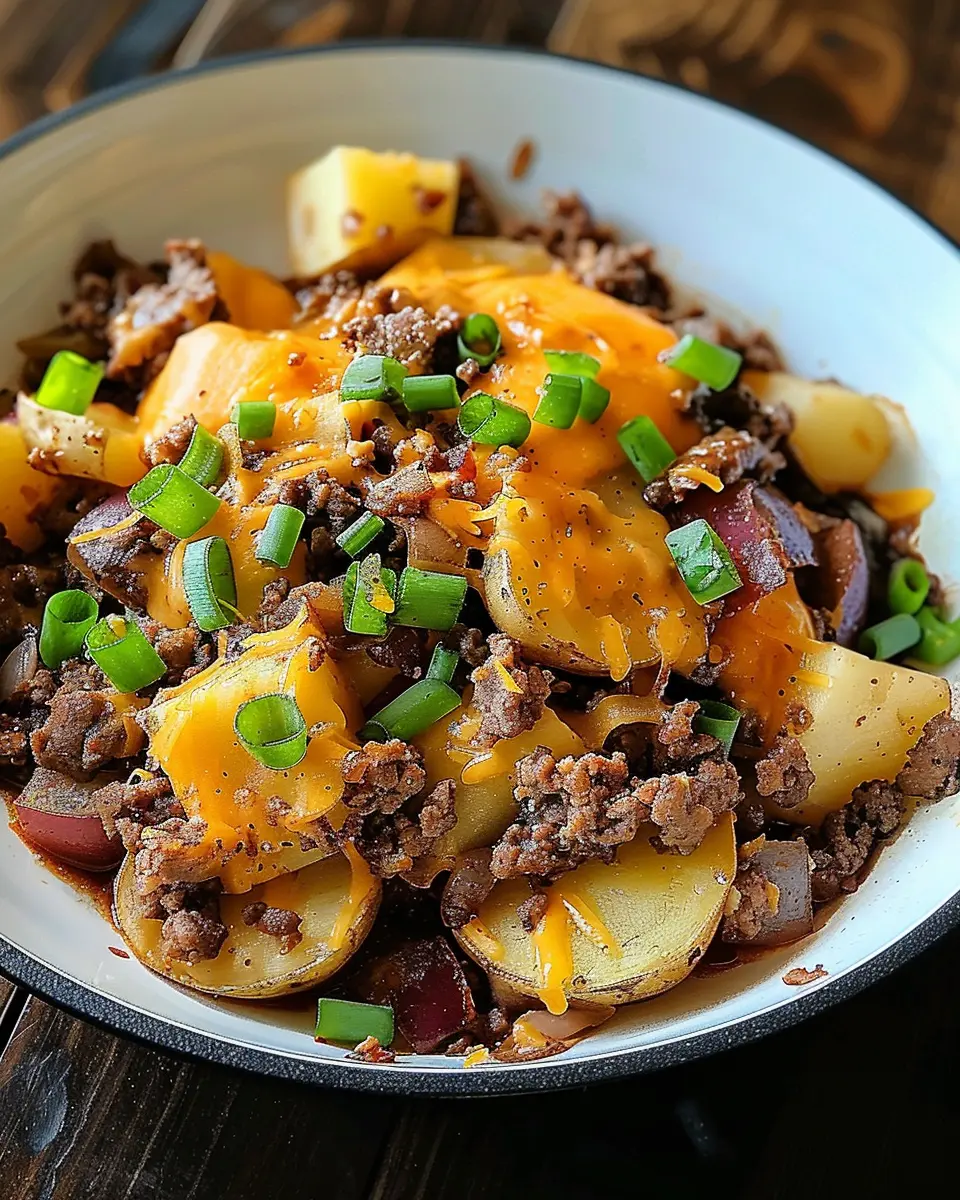 Keywords: Loaded Ground Beef and Potatoes Skillet, Comfort Food, Easy Recipes