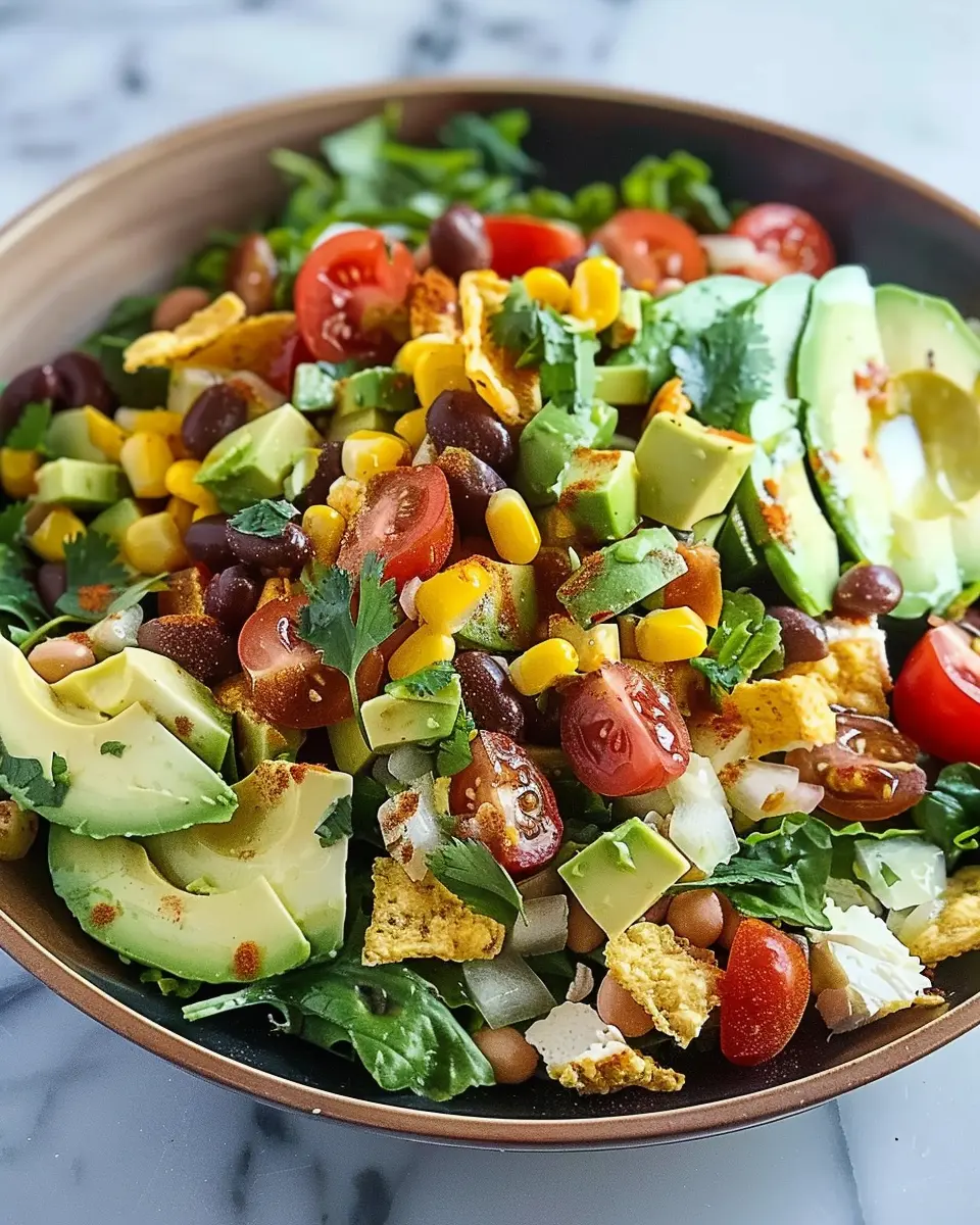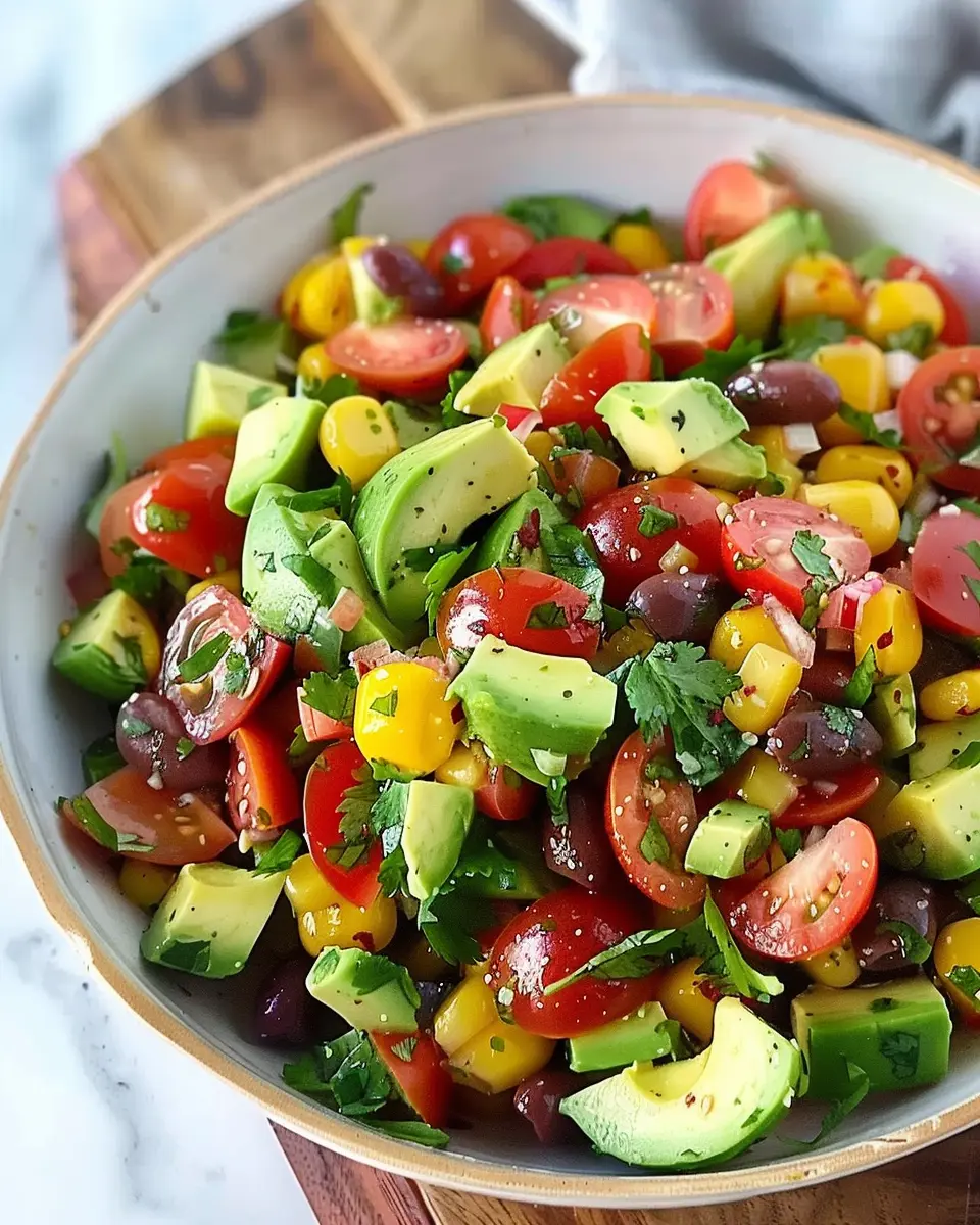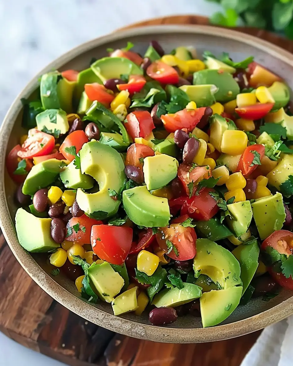 Finally, it’s time for the grand assembly! In a large bowl, combine all your chopped veggies, rinsed beans and corn, and diced avocados. Drizzle the vinaigrette over the top, and gently toss everything together to ensure the flavors mingle beautifully.
