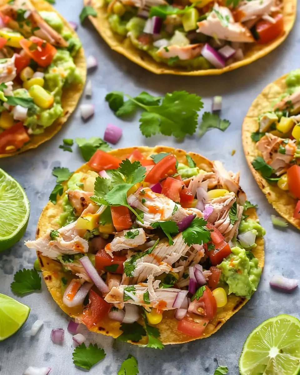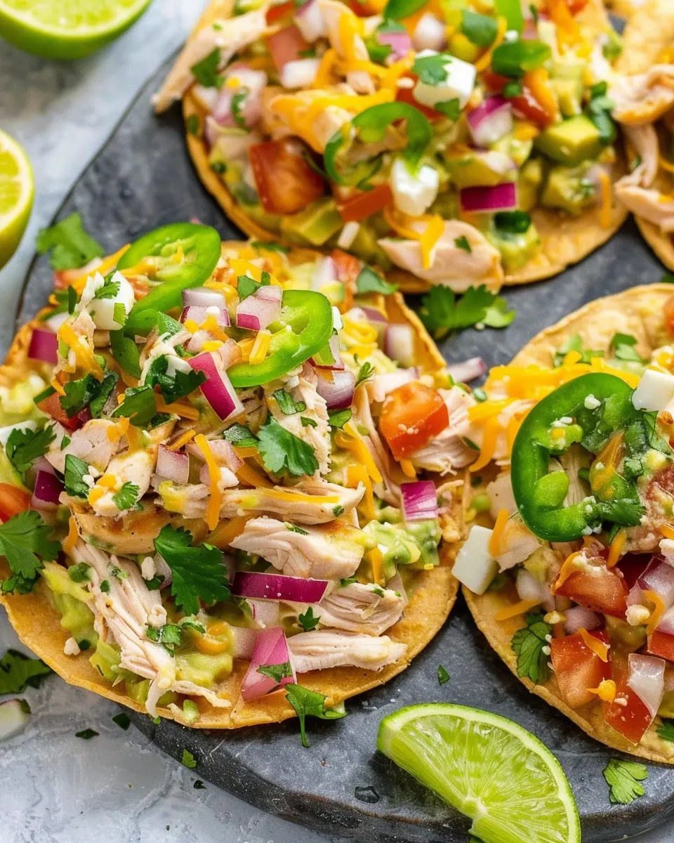 What makes these tostadas stand out? It’s all about the layers! Begin with a crunchy base — your tostada — which is usually made from corn tortillas baked to perfection. On top of that, you’ll layer a tantalizing chicken salad mixing tender chicken, zesty lime juice, creamy avocado, and crunchy veggies. This hearty toppings combination is not only delicious but also packed with nutrition, making it a great option for anyone looking to eat healthily without sacrificing flavor.