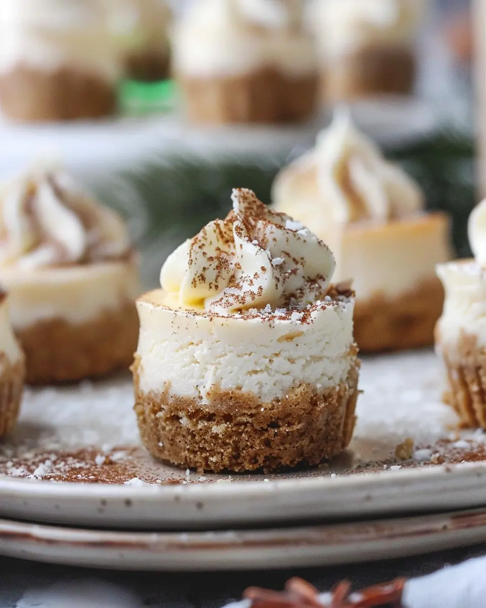 Delight in these Mini Eggnog Cheesecakes, the perfect holiday dessert that everyone will love!