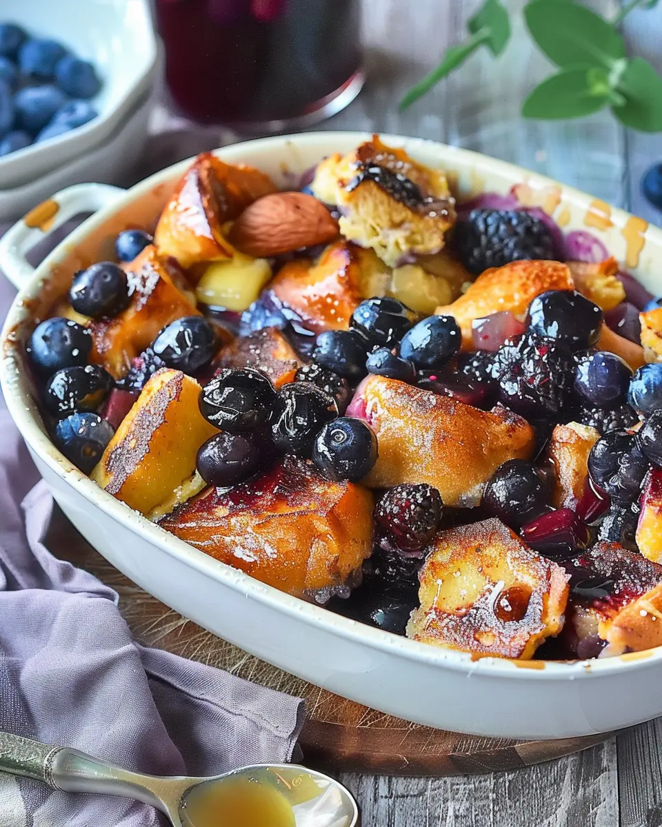 While blueberries are delicious and a classic choice, don’t hesitate to mix things up with other fruits in your Overnight Blueberry French Toast Casserole. Raspberries, strawberries, or sliced peaches can provide a delightful twist. Just like blueberries, these fruits pair beautifully with maple syrup, creating a fresh and vibrant flavor profile.