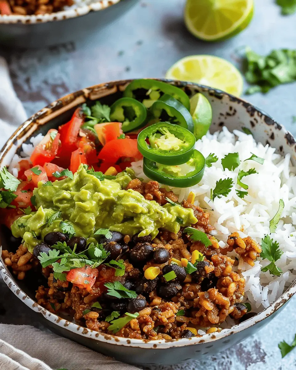 You can perfect your taco rice bowl by adding avocado for creaminess or a sprinkle of nutritional yeast for a cheesy flavor without dairy. Don’t forget to load up on your favorite toppings to create a filling and satisfying meal.