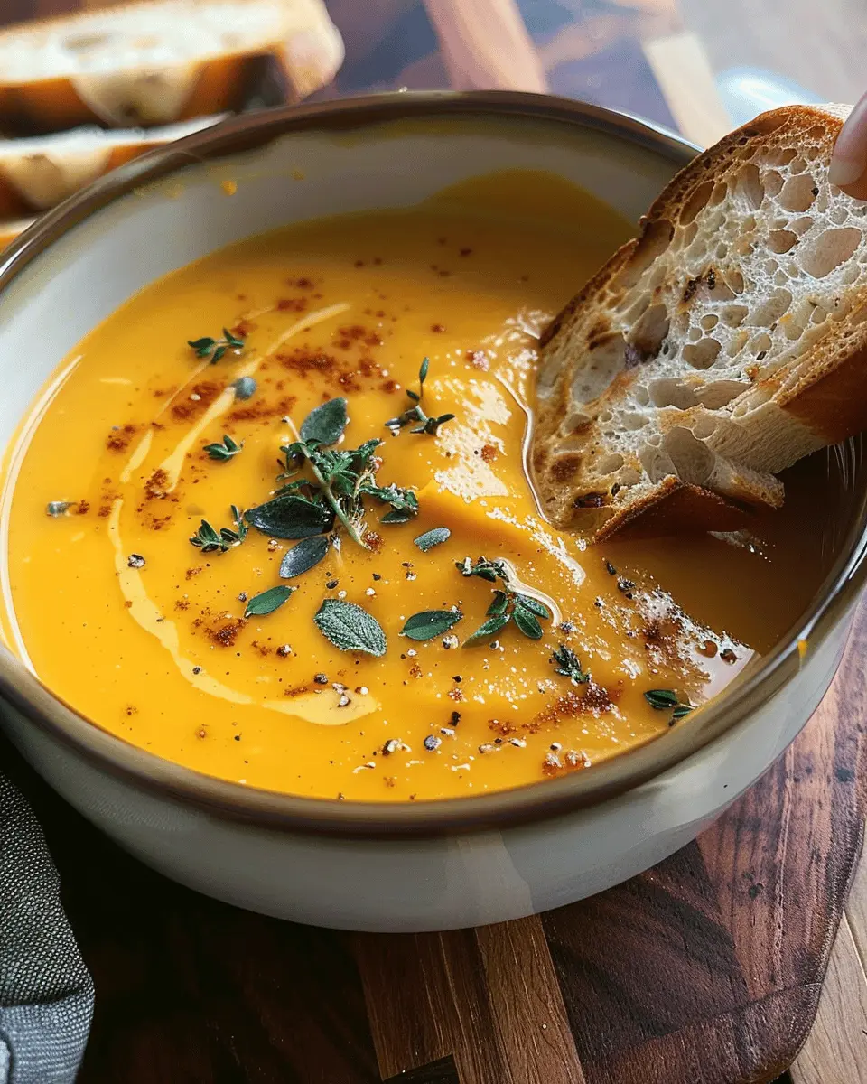 - Butternut Squash: Naturally sweet and creamy, it serves as the soup’s base.