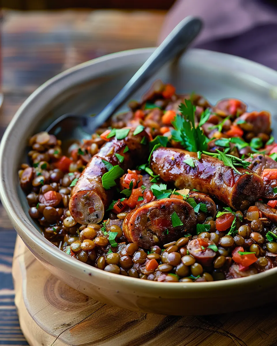 Slow cooker Italian lentils with sausages and chilli: Easy Comfort Food