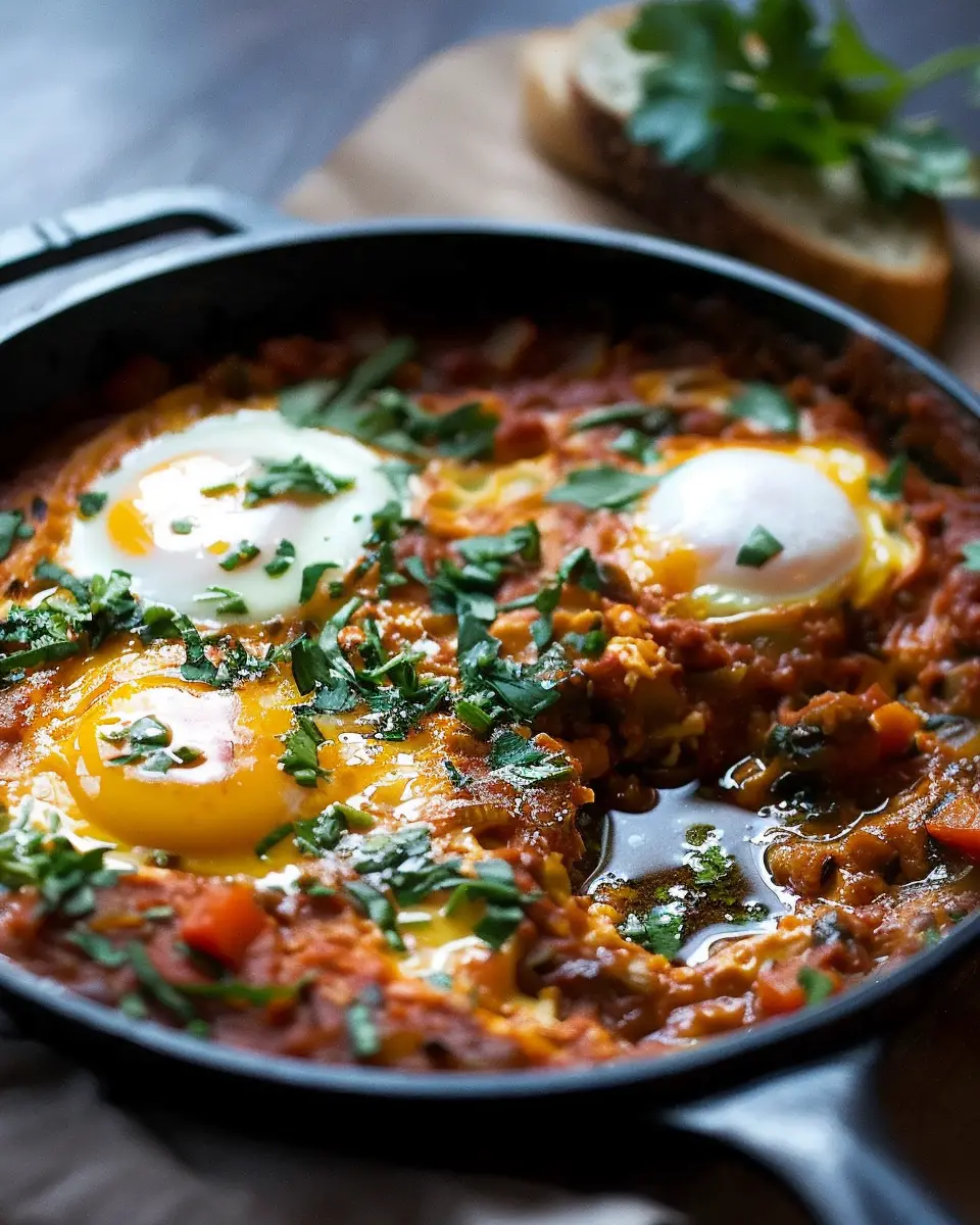 Once the eggs are cooked to your liking, serve your shakshuka hot, garnished with fresh herbs for a pop of color and freshness.
