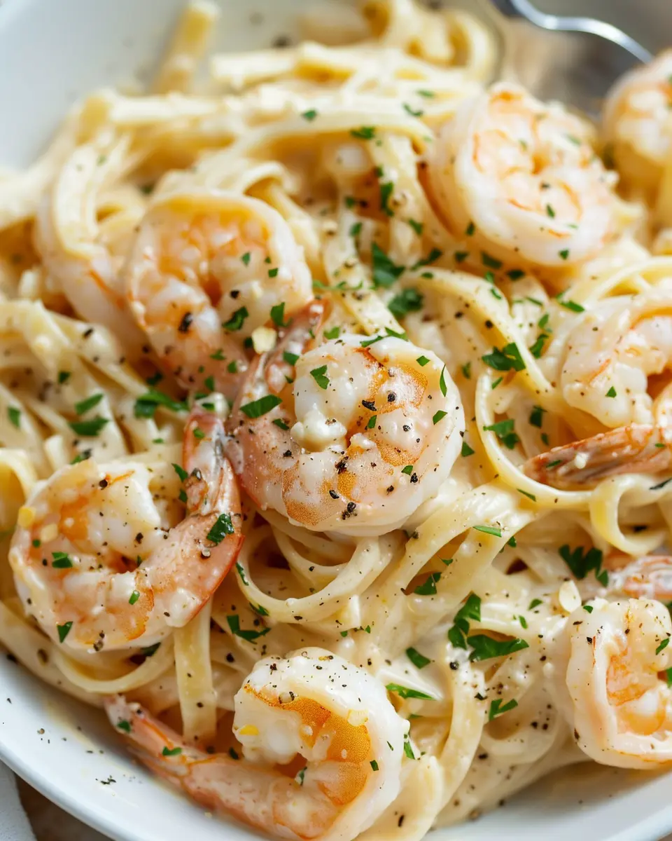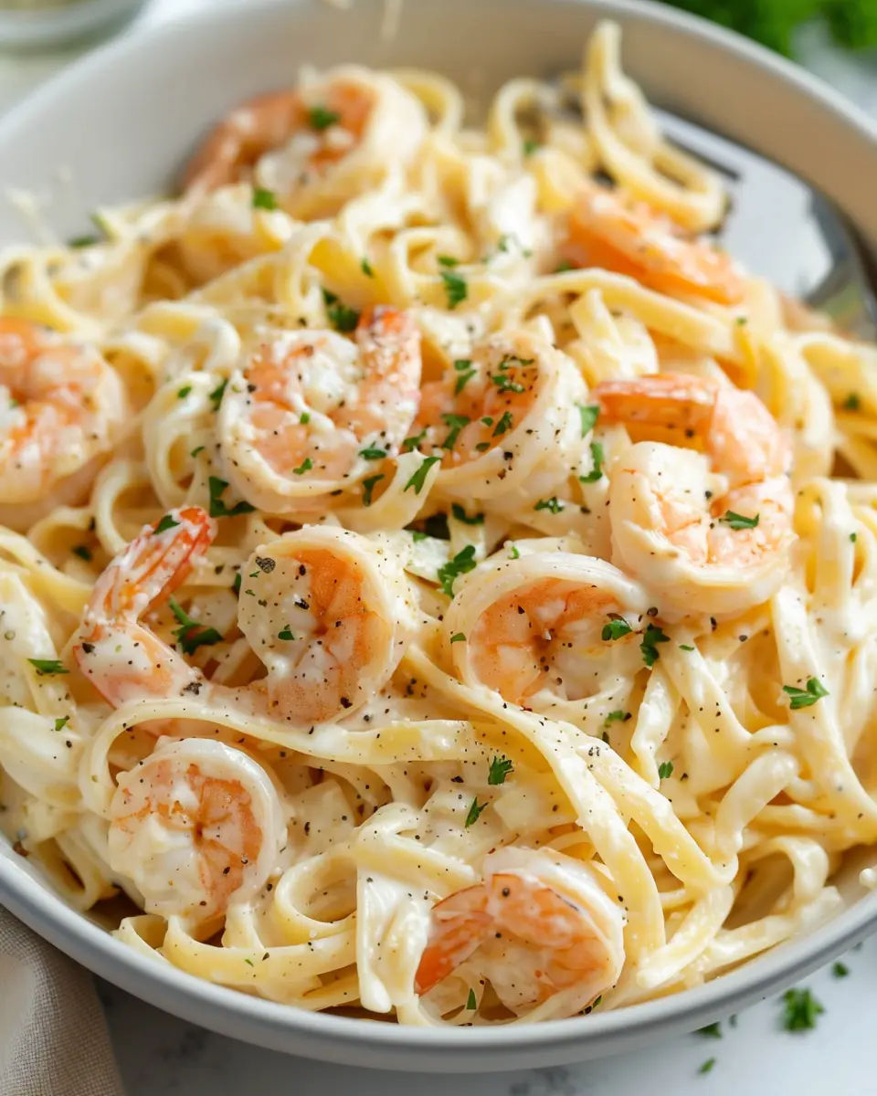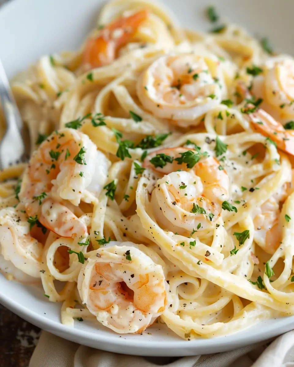 PrintShrimp Alfredo Fettuccine: Easy Indulgence for Any Home Cook