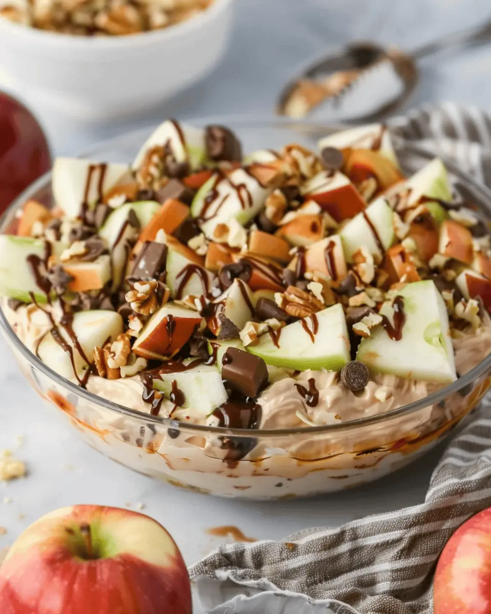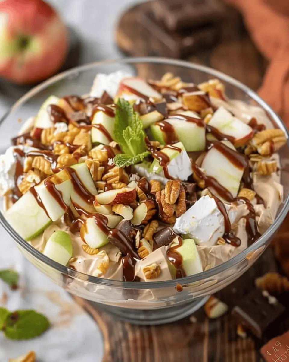 Planning a picnic or a potluck? Your Snickers Apple Salad will be a showstopper. Present it in a beautiful serving bowl and garnish with a sprinkle of chopped nuts or a drizzle of caramel sauce. It’s visually appealing and simple to make ahead of time.