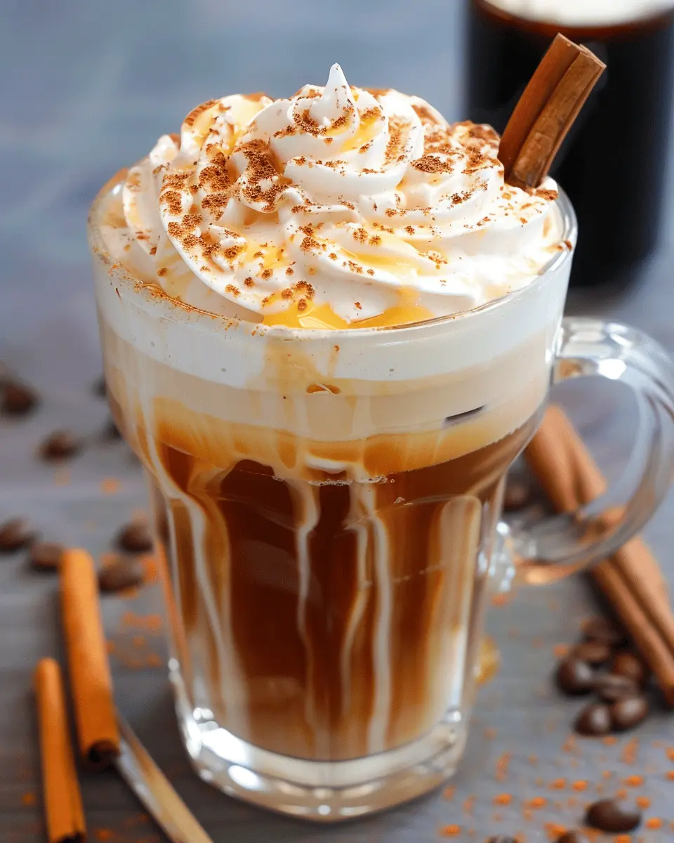 • Layered Glass: Use a clear glass to show off the beautiful layers of espresso and milk, topped with whipped cream and a sprinkle of cinnamon.