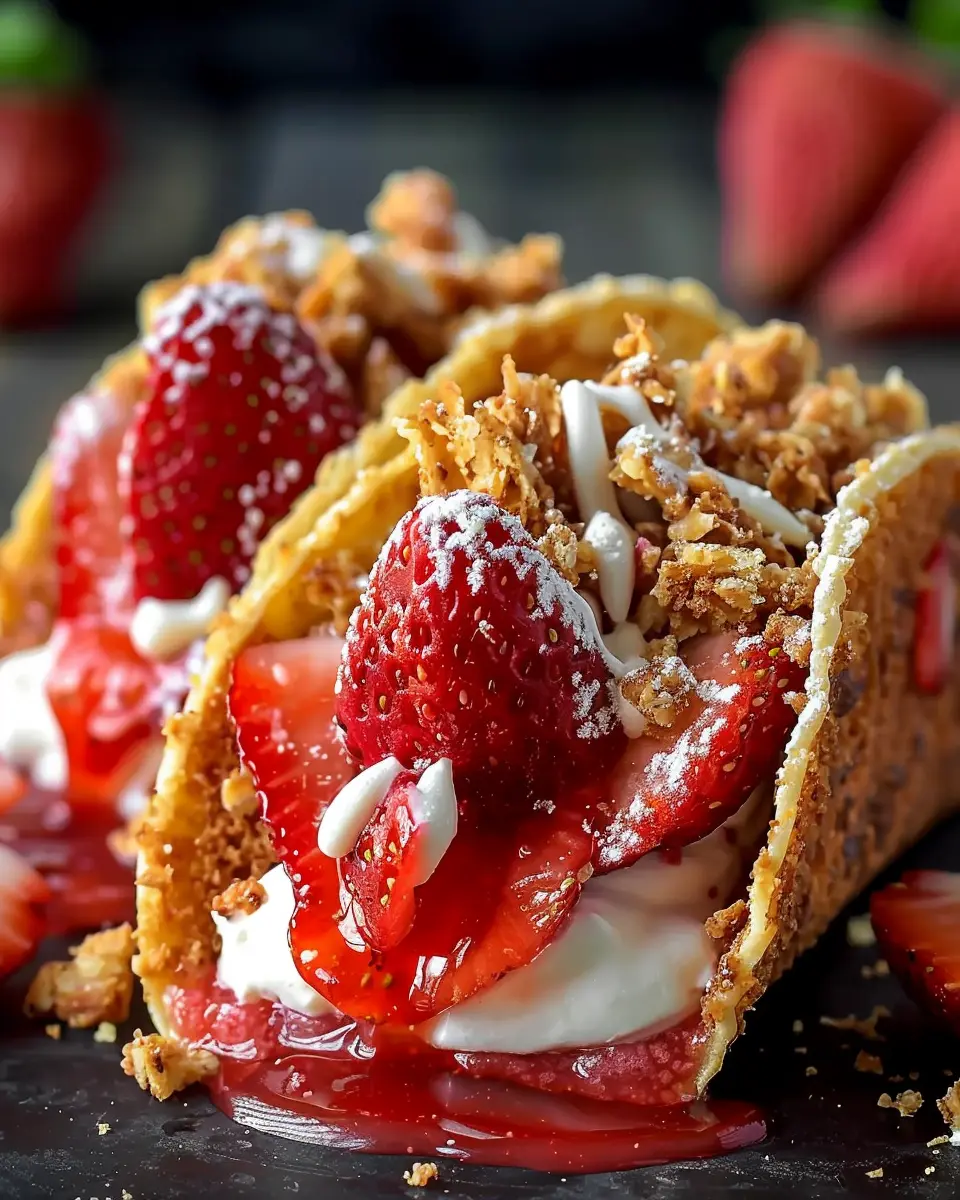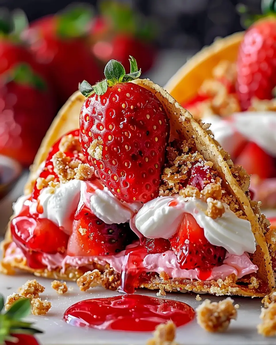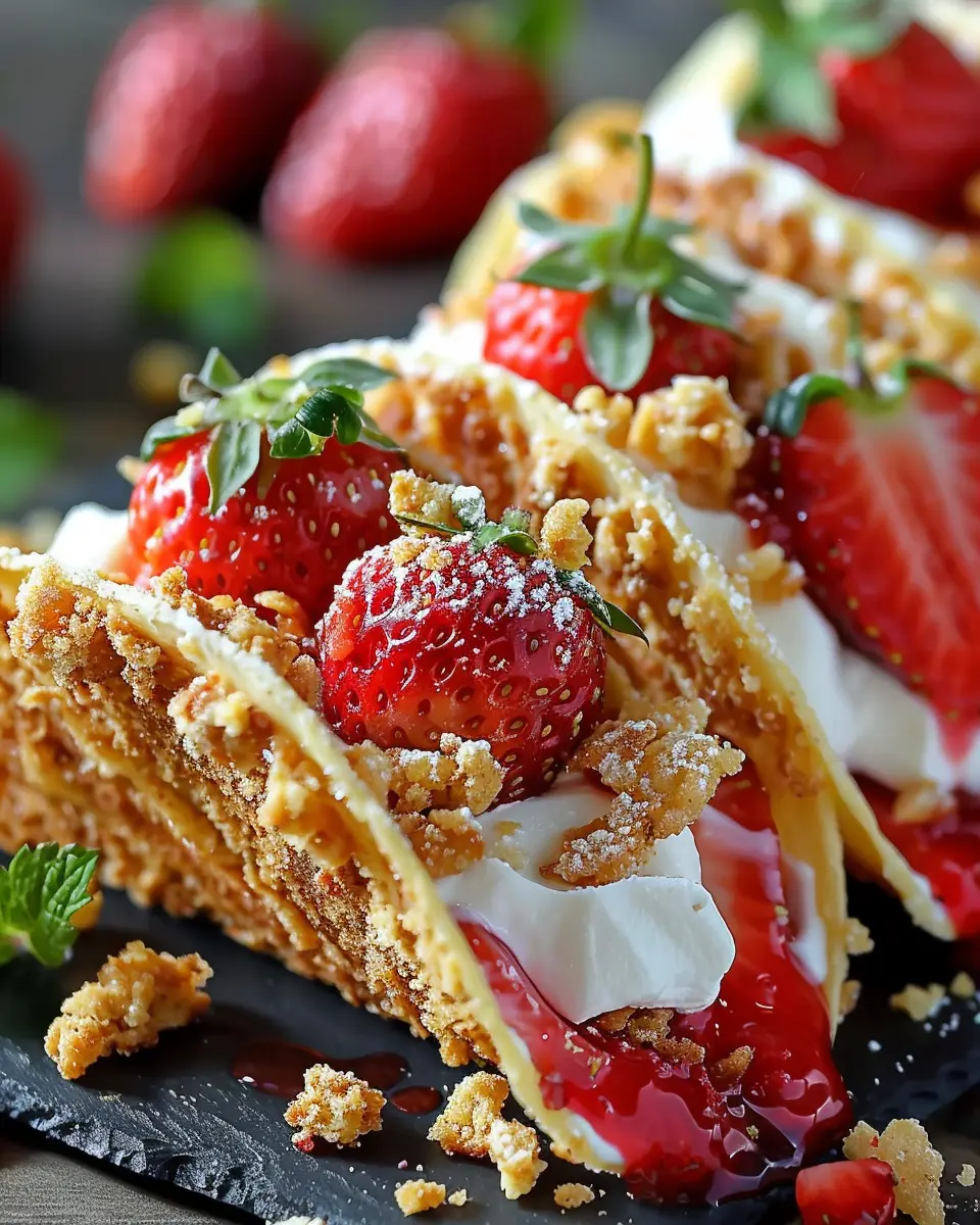 These Strawberry Crunch Cheesecake Tacos offer a delightful twist on a classic dessert, combining the flavors of fresh strawberries and creamy cheesecake in a fun, crunchy taco shell.
