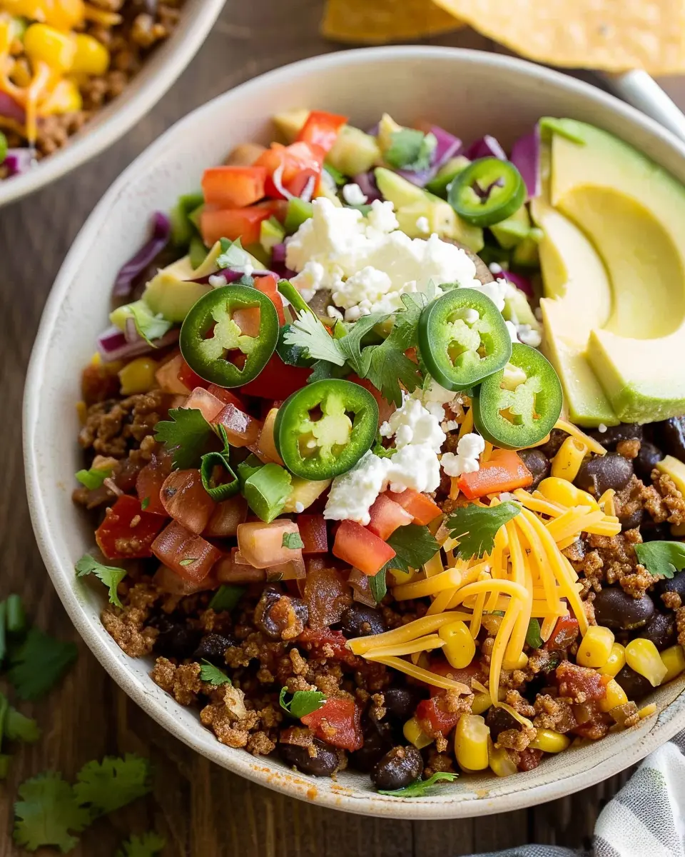 As a final flourish, consider garnishing your taco bowls with fresh cilantro or sliced green onions for a pop of color and flavor. You might also add a wedge of lime on the side for those who enjoy a citrusy twist.