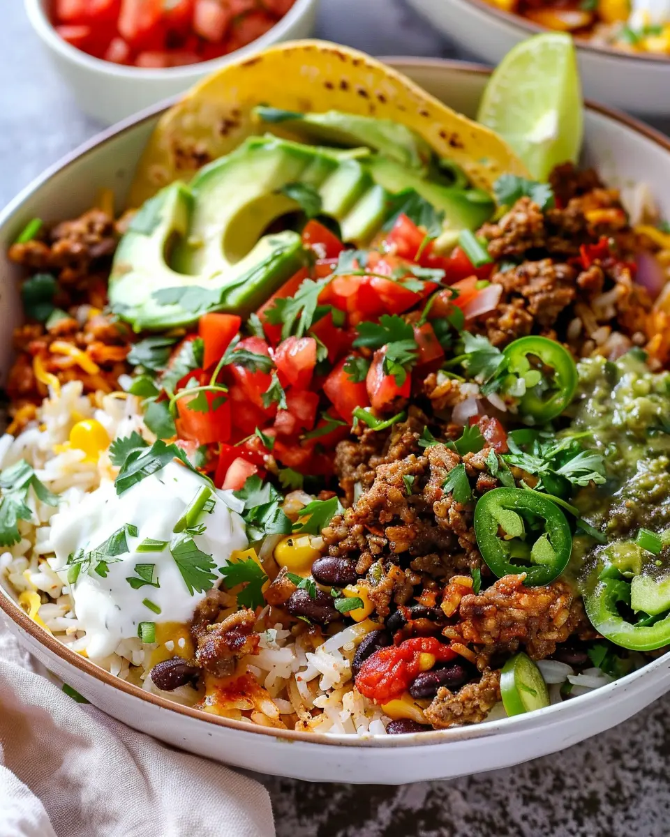 Refreshing Beverages: Consider serving your Taco Rice Bowl with a cool limeade or an iced tea infused with mint. These drinks can enhance the overall enjoyment and make each bite even more satisfying.