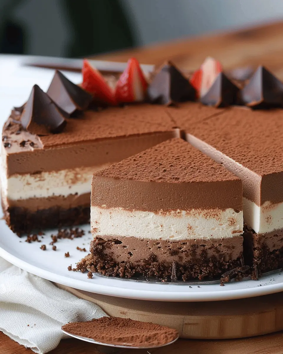 Keywords: Triple Chocolate Mousse Torte, chocolate dessert, indulgent dessert