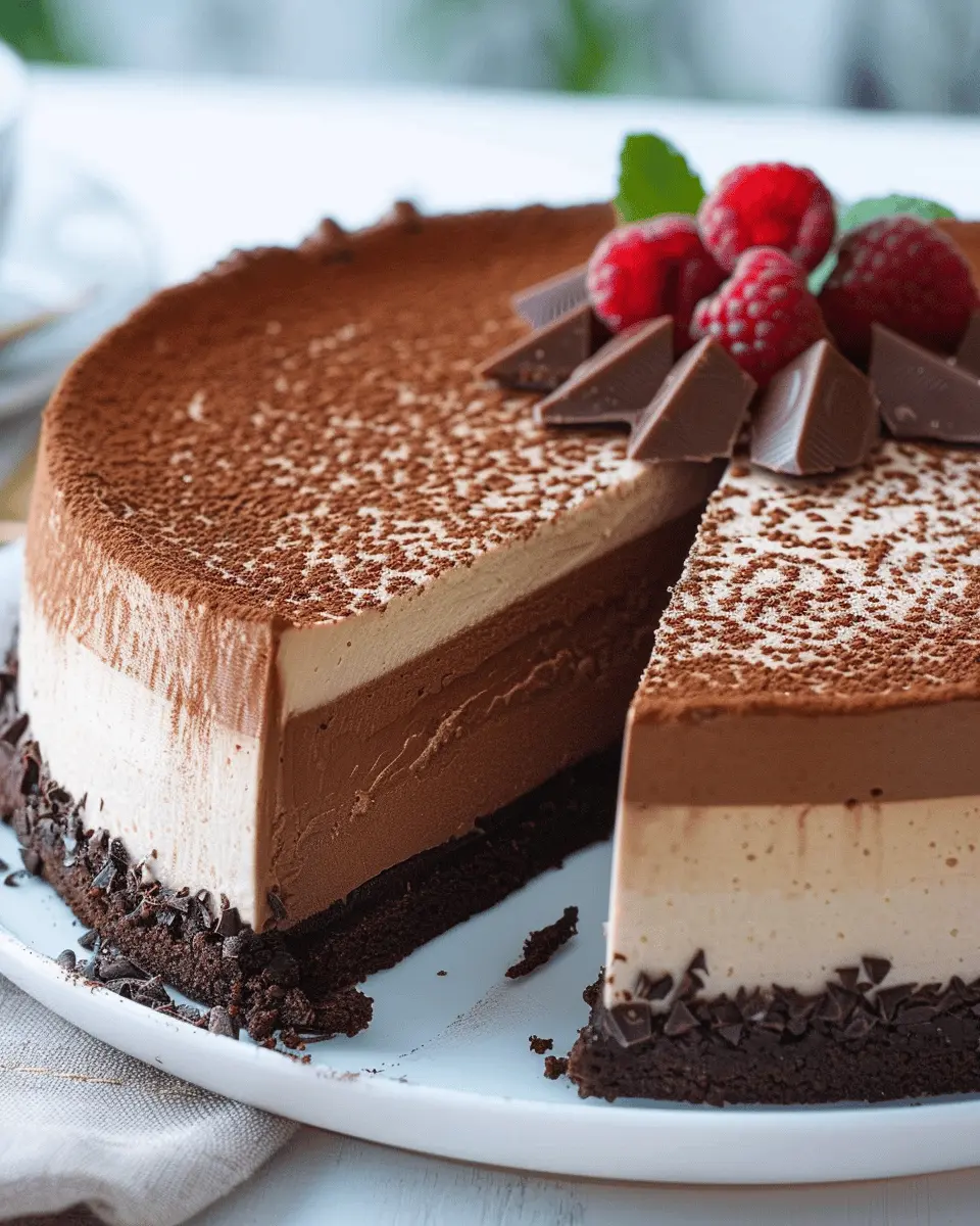 Keywords: Triple Chocolate Mousse Torte, chocolate dessert, mousse recipe, indulgent dessert