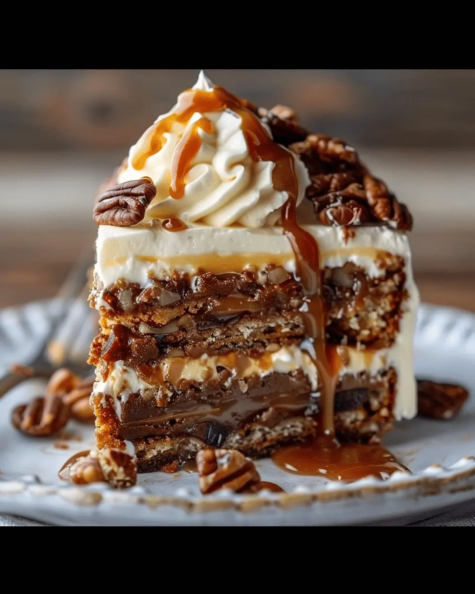 A rich and decadent Turtle Caramel Cake that combines layers of chocolate cake, caramel, and creamy frosting.