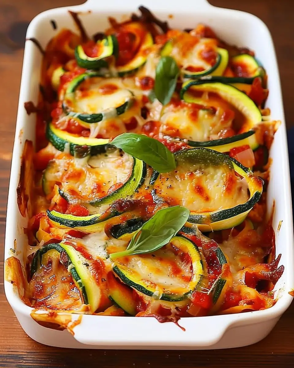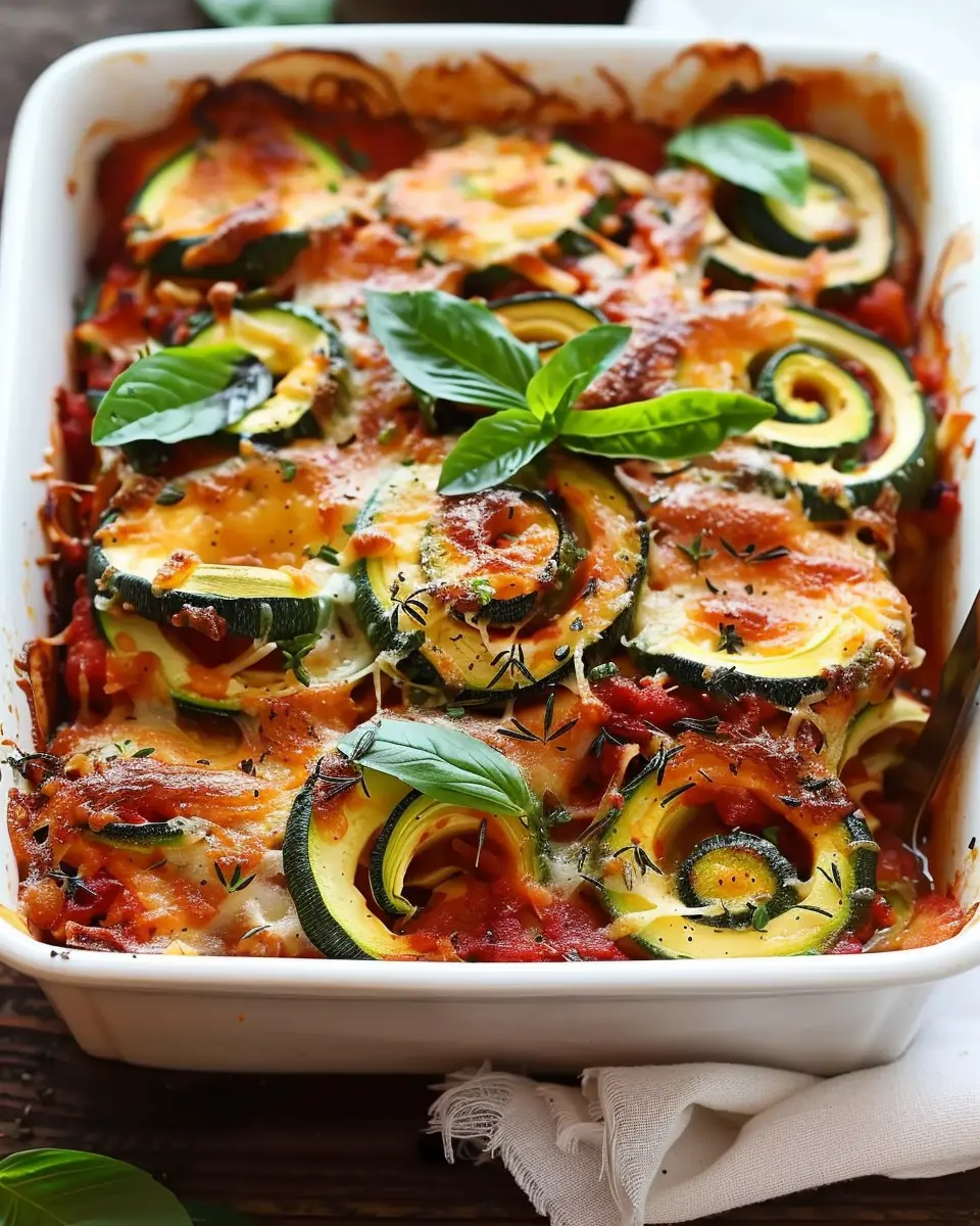 A delicious and healthy take on classic lasagna, featuring zucchini spirals layered with rich marinara and cheese.
